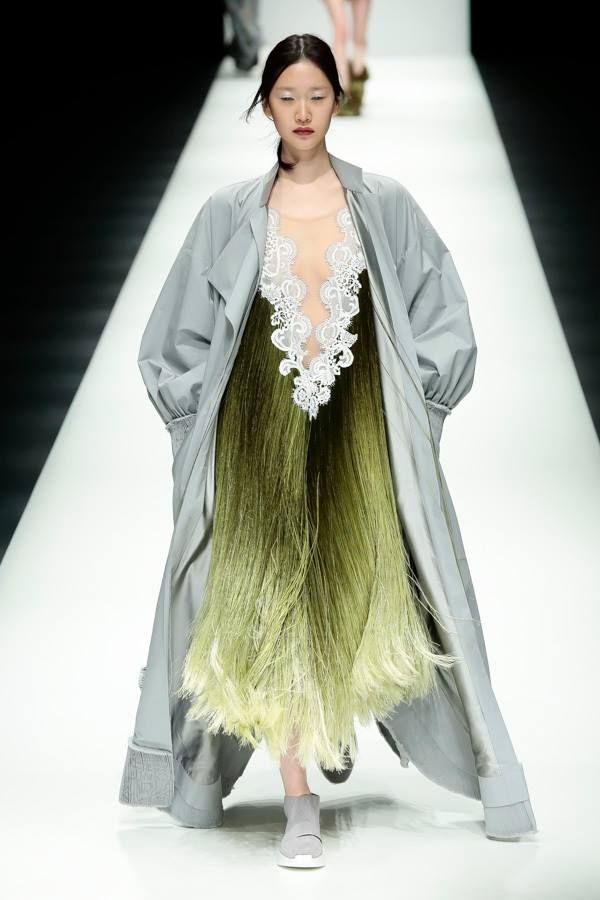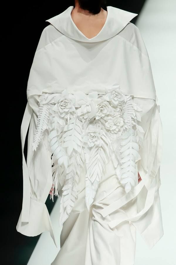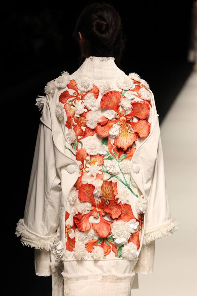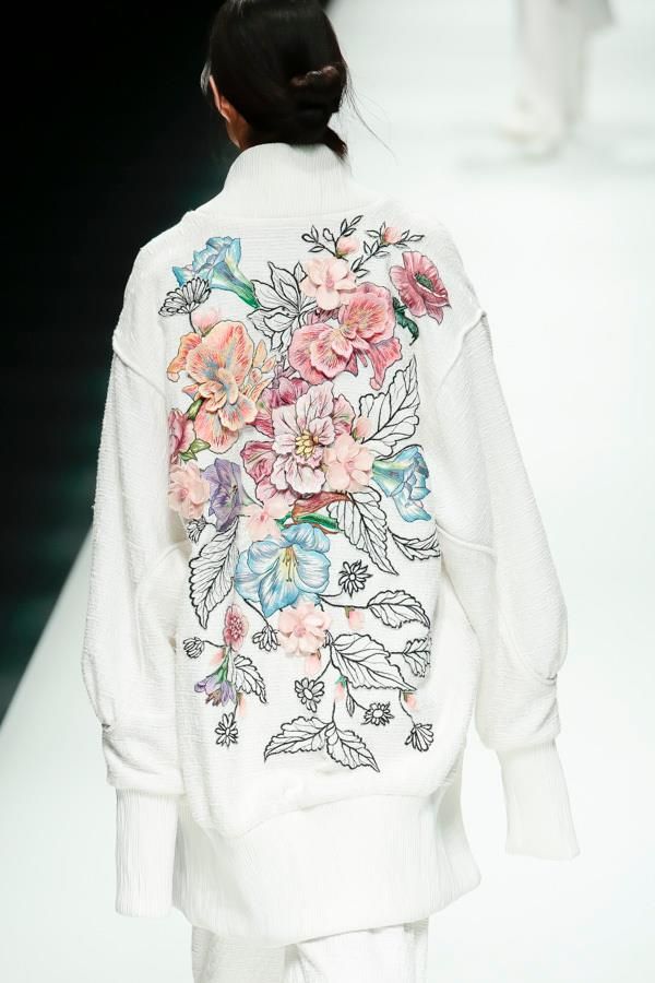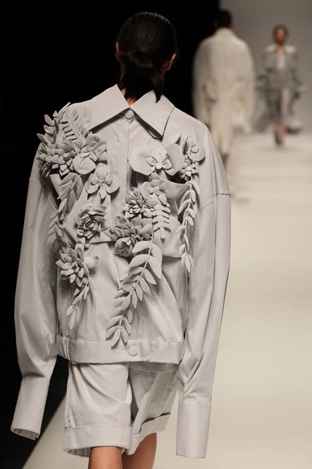 Ban đầu, khi người mẫu bước ra, khán giả chỉ nhìn thấy những mẫu thiết kế oversize vô cùng đơn giản, thậm chí chỉ toàn màu trắng, thế nhưng khi người mẫu quay lung lại, những chi tiết hoa đính kết vô cùng thủ công trên lung áo khiến ai cũng cảm thấy ấn tượng và “choáng ngợp”.
