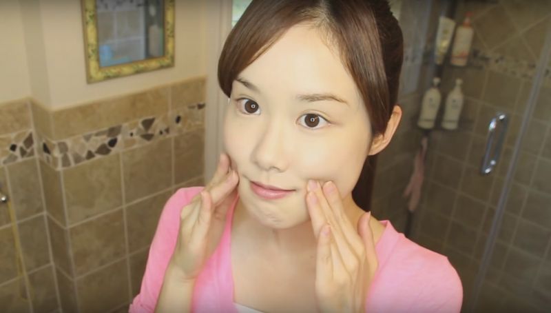 Một trong những cách phòng tránh nếp nhăn, giúp da căng mịn, hồng hào hơn của Melodee chính là cô thường matxa mặt và bấm huyệt vào mỗi buổi sáng và tối trong khi rửa mặt. (Ảnh: Melodee Morita)