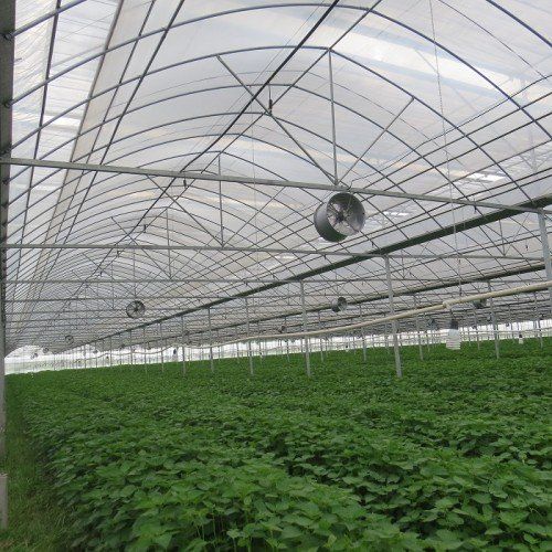 Khu vực trồng rau tía tô trong nhà kính. (Ảnh: Đức Phương)