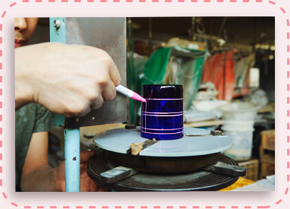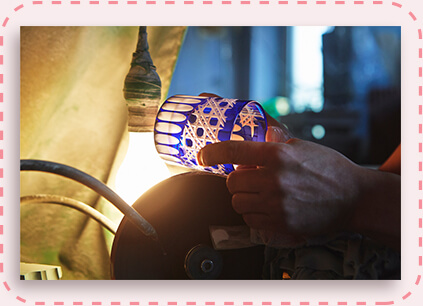 Bước cuối cùng là phủ chất mài mòn (chất đánh bóng) kín mặt thuỷ tinh và đánh bóng thêm lần nữa. Chọn loại chất đánh bóng nào và số lượng bao nhiêu tuỳ thuộc vào mỗi nghệ nhân. Thành quả sau cùng chính là những tạo tác Edo Kiriko lung linh bóng bẩy khiến chúng ta trầm trồ.