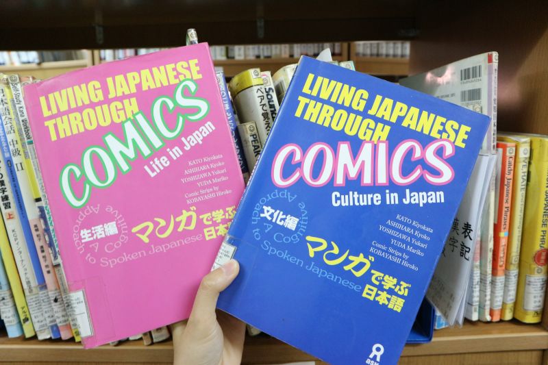 Tìm được hai đầu sách ưng ý hết sức, học tiếng Nhật qua truyện tranh Nhật! (Ảnh: Ngô Phương Thảo)