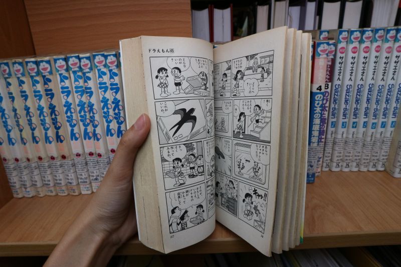 Truyện Doraemon tuy đã ngả màu nhưng cảm xúc khi cầm trên tay Doraemon bản gốc vẫn hồi hộp khó tả cả nhà ơi. Ngoài ra còn rất nhiều cuốn truyện tranh “made in Japan”, từ “The wonderful world of Sazaesan”, “Kindaichi”, truyện song ngữ Anh – Nhật “Princess Knight”… (Ảnh: Ngô Phương Thảo)