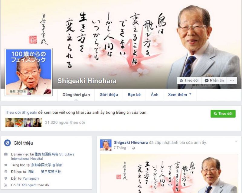 Sống tới thời đại công nghệ, bác sĩ Shigeaki Hinohara cũng bắt kịp xu hướng rất nhanh.Ông thường xuyên đăng tải những trạng thái, bài viết và hình ảnh của mình trên trang cá nhân và blog. Theo ông, “Việc luôn làm mới mình mới khiến bản thân không già nua!”