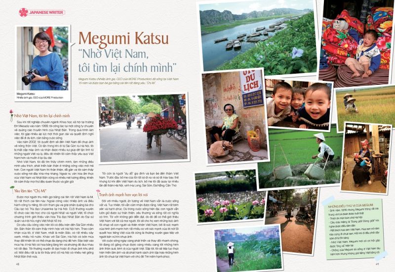 Lần đầu tiên tạp chí Kilala có chuyên mục:JAPANESE WRITER– những góc nhìn và quan điểm của người Nhật khi nghĩ đến Việt Nam. Trong số này, chịMegumi Katsu(Nhiếp ảnh gia, CEO của MORE production) sẽ chia sẻcâu chuyện “Tìm lại chính mình” khi sống tại Việt Nam. Quá căng thẳng và áp lực trong công việc tại Nhật, chị quyết định nghỉ việc để đi du lịch, cân bằng cuộc sống. Vào năm 2002, chị quyết định sẽ đến Việt Nam để chụp ảnh về nông thôn Việt. Có lần trong khi đi từ Sài Gòn ra Hà Nội, chị bị mất cắp máy ảnh và nhận được nhiều sự giúp đỡ tận tình từ những người Việt xa lạ, điều đó khiến chị cảm thấy yêu quý Việt Nam hơn và muốn ở lại lâu dài.