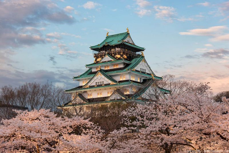 Lâu Đài Osaka được lợp mái ngói màu ngọc lục bảo. Bạn có thể bỏ ra 500 yên để vào bên trong và leo lên lầu cao nhất để ngắm toàn cảnh Osaka. (Ảnh: Flickr)
